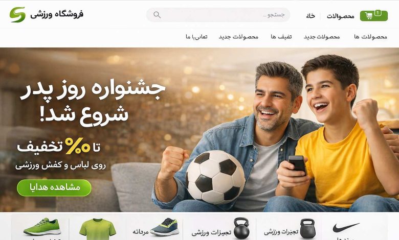 بنر تبلیغاتی روز پدر یک سایت لوازم ورزشی شامل یک پدر و پسر هوادار ورزش و فوتبالبنر تبلیغاتی روز پدر یک سایت لوازم ورزشی شامل یک پدر و پسر هوادار ورزش و فوتبال
