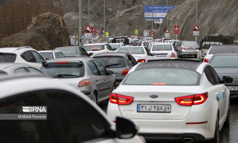 ترافیک سنگین در جاده چالوس/ بارش برف و باران در ۹ استان