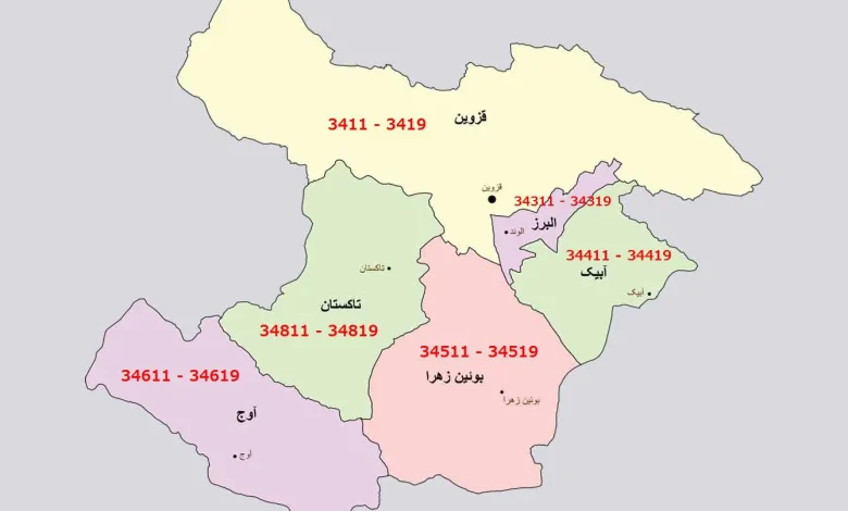 نقشه کد پستی شهر های استان قزویننقشه کد پستی شهر های استان قزوین